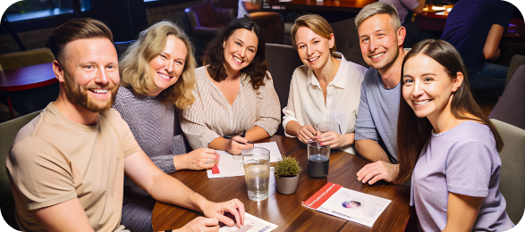 Отвечаете на вопросы на специальных бланках (всё выдадим на месте!), заказываете еду и напитки, классно проводите время